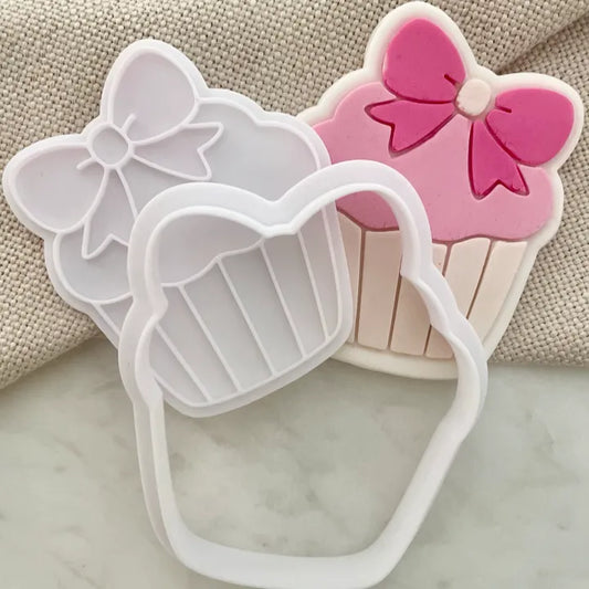 Cupcake with bow Cookie Cutter & Fondant Embosser