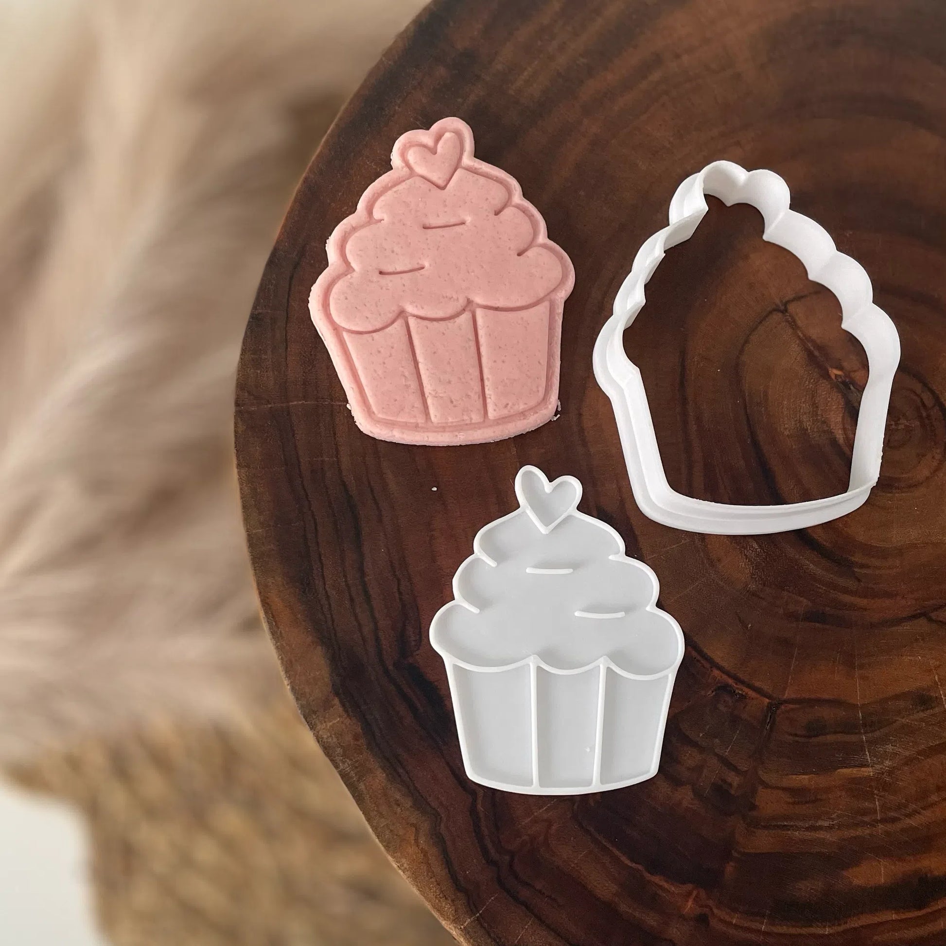 Cupcake with Heart Cookie Cutter & Fondant Embosser