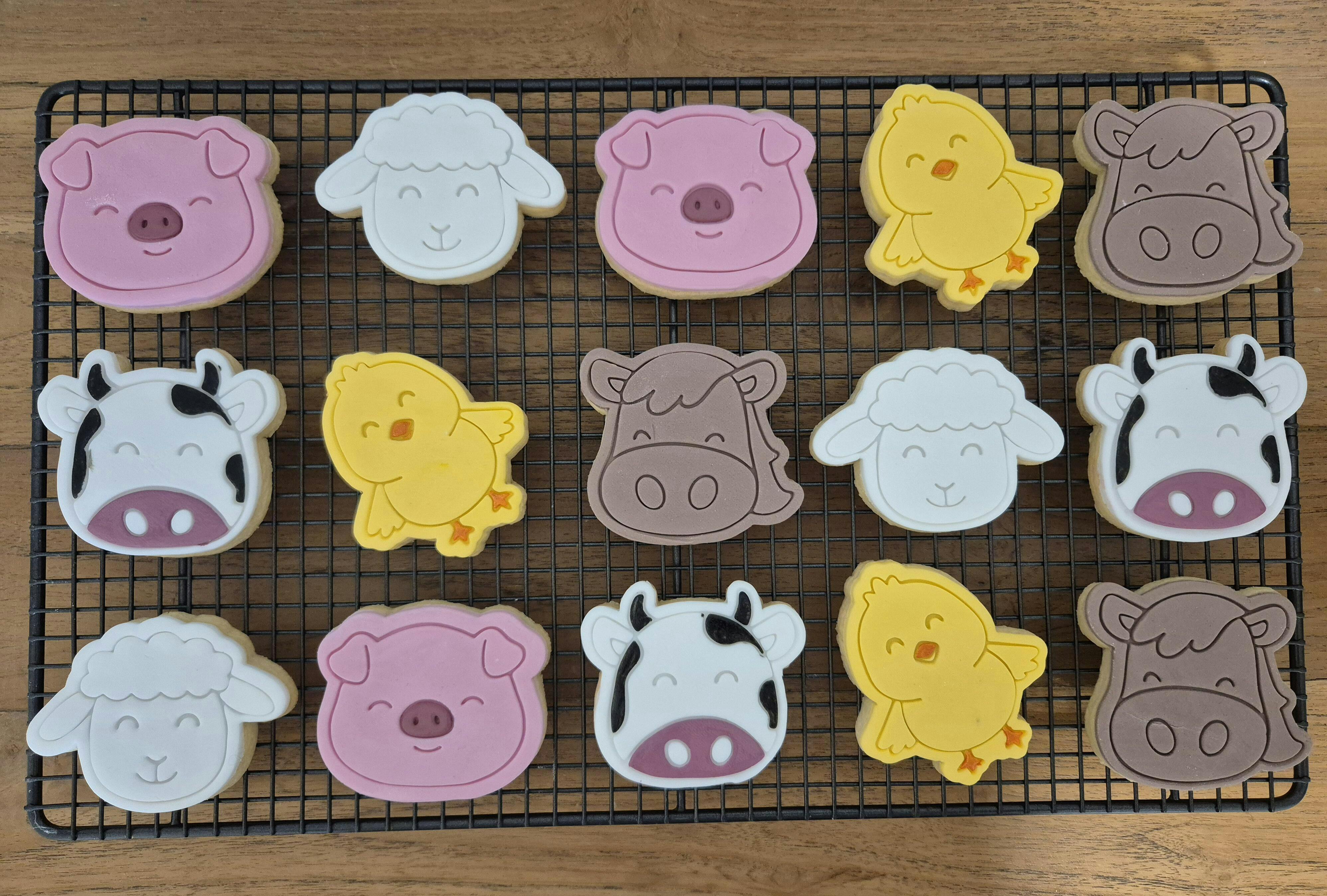 Farm Animals – perfect for any farm themed or 'Holy Cow' children’s birthday cookies. Made for beginner and professional bakers, who want to create professionally decorated sugar cookies with consistent results every time.