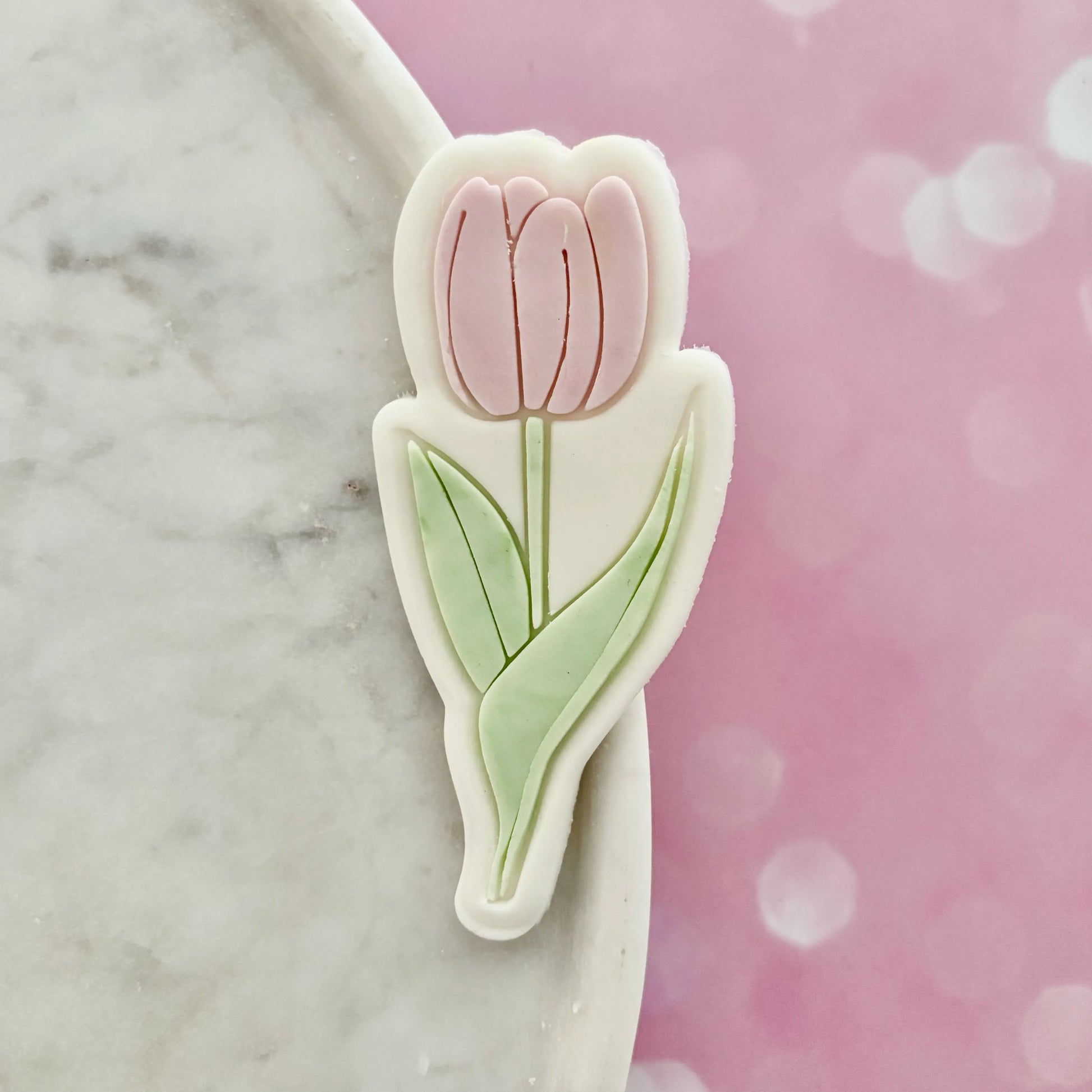 Single Tulip stem Cookie Cutter & Fondant Embosser